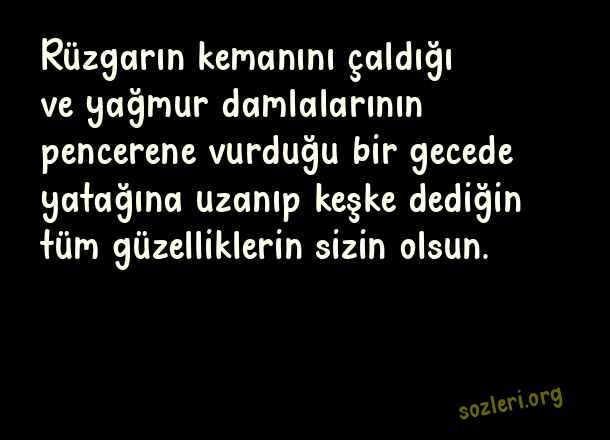 Rüzgarın kemanını çaldığı ve yağmur damlalarının pencerene vurduğu bir gecede yatağına uzanıp keşke dediğin tüm güzelliklerin sizin olsun. ( Kadir Gecesi İçin Güzel Sözler )