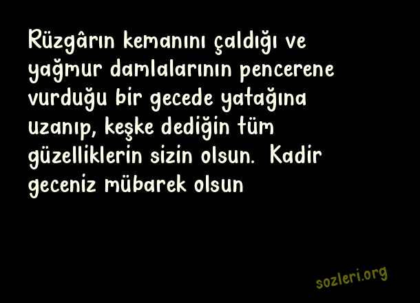 Rüzgârın kemanını çaldığı ve yağmur damlalarının pencerene vurduğu bir gecede yatağına uzanıp, keşke dediğin tüm güzelliklerin sizin olsun. Kadir geceniz mübarek olsun… ( Kadir Gecesi Telefon )