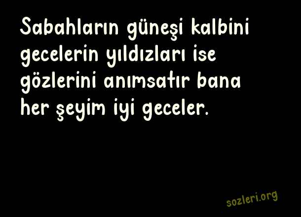 Sabahların güneşi kalbini gecelerin yıldızları ise gözlerini anımsatır bana her şeyim iyi geceler. ( İyi Geceler )