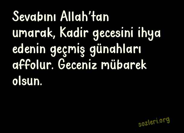 Sevabını Allah’tan umarak, Kadir gecesini ihya edenin geçmiş günahları affolur. Geceniz mübarek olsun. ( Kadir Gecesi İçin Güzel Sözler )