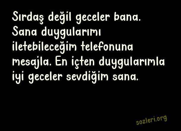Sırdaş değil geceler bana. Sana duygularımı iletebileceğim telefonuna mesajla. En içten duygularımla iyi geceler sevdiğim sana. ( İyi Geceler )