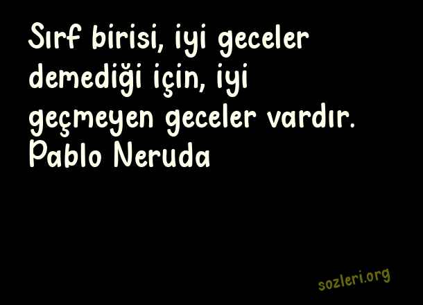 Sırf birisi, iyi geceler demediği için, iyi geçmeyen geceler vardır. Pablo Neruda ( Etkileyici İyi Geceler )