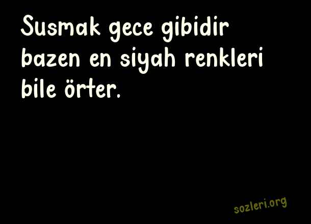 Susmak gece gibidir bazen en siyah renkleri bile örter. ( Gece )