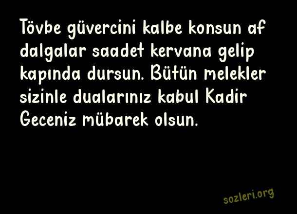 Tövbe güvercini kalbe konsun af dalgalar saadet kervana gelip kapında dursun. Bütün melekler sizinle dualarınız kabul Kadir Geceniz mübarek olsun. ( Kadir Gecesi İçin Güzel Sözler )