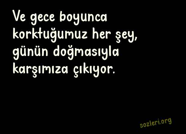Ve gece boyunca korktuğumuz her şey, günün doğmasıyla karşımıza çıkıyor. ( Gece )