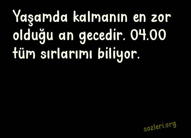 Yaşamda kalmanın en zor olduğu an gecedir. 04.00 tüm sırlarımı biliyor. ( Gece )