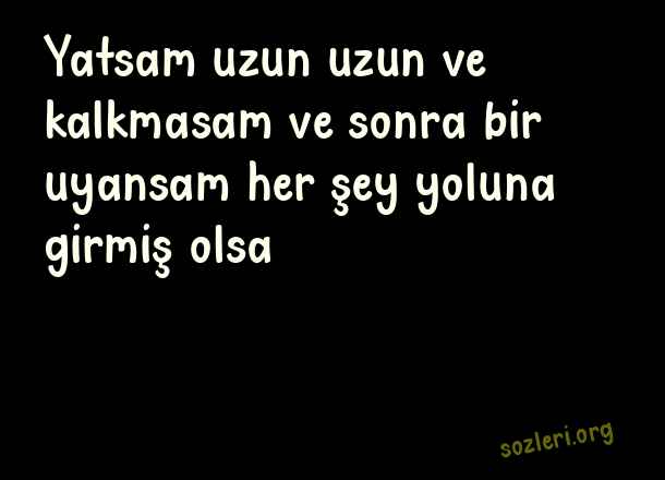 Yatsam uzun uzun ve kalkmasam ve sonra bir uyansam her şey yoluna girmiş olsa.