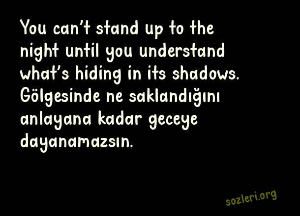 You can’t stand up to the night until you understand what’s hiding in its shadows. Gölgesinde ne saklandığını anlayana kadar geceye dayanamazsın. ( Gece İle İlgili İngilizce Sözler )