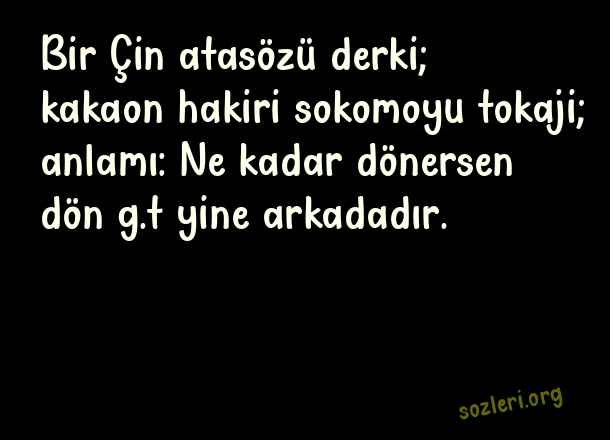 Bir Çin atasözü derki; kakaon hakiri sokomoyu tokaji; anlamı: Ne kadar dönersen dön g.t yine arkadadır. ( Geyik Sözler )
