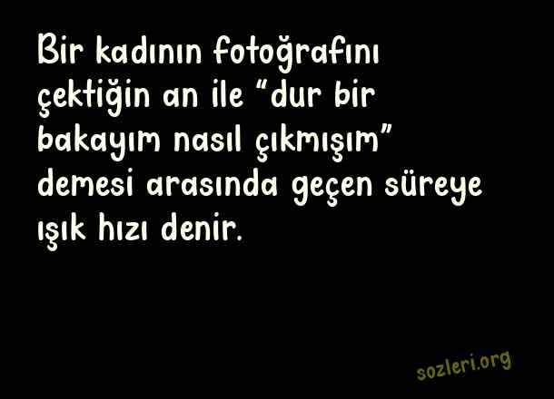 Bir kadının fotoğrafını çektiğin an ile “dur bir bakayım nasıl çıkmışım” demesi arasında geçen süreye ışık hızı denir. ( Geyik Sözler )