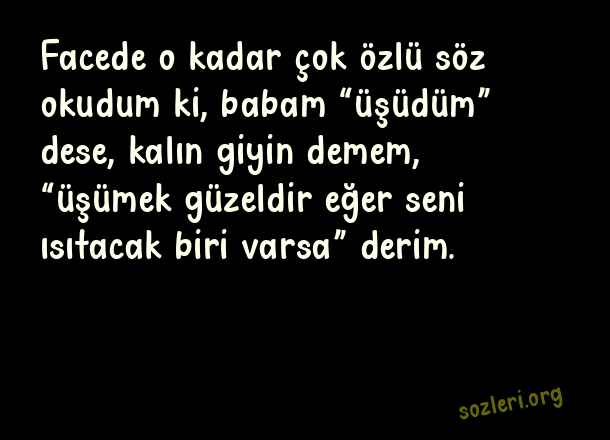 Facede o kadar çok özlü söz okudum ki, babam “üşüdüm” dese, kalın giyin demem, “üşümek güzeldir eğer seni ısıtacak biri varsa” derim. ( Geyik Sözler )