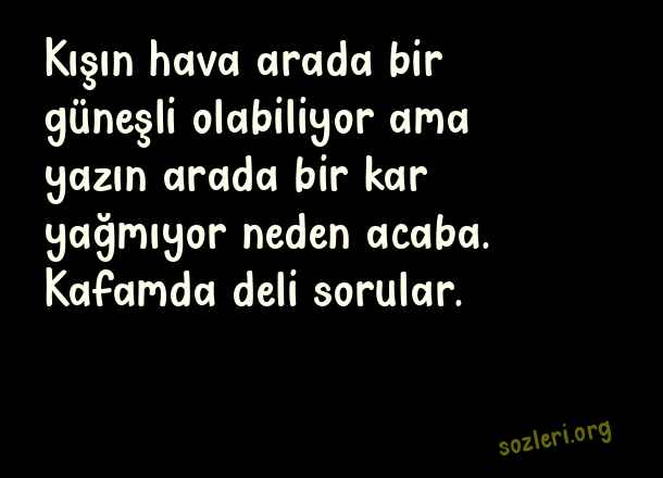 Kışın hava arada bir güneşli olabiliyor ama yazın arada bir kar yağmıyor neden acaba. Kafamda deli sorular. ( Geyik Sözler )