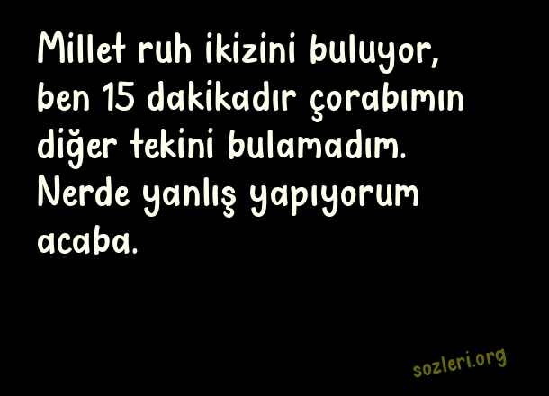 Millet ruh ikizini buluyor, ben 15 dakikadır çorabımın diğer tekini bulamadım. Nerde yanlış yapıyorum acaba. ( Geyik Sözler )