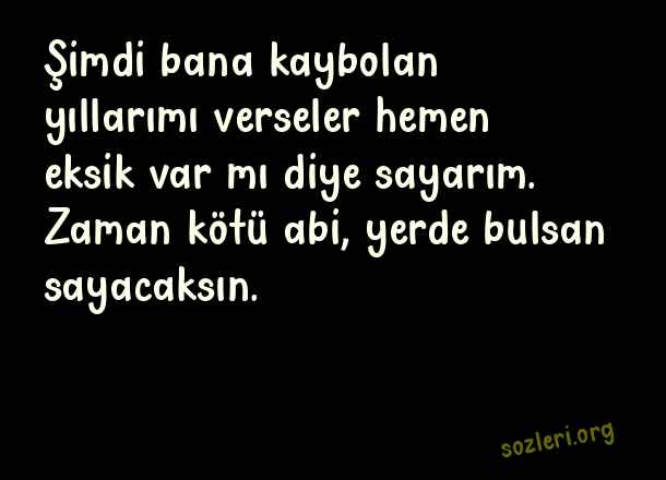 Şimdi bana kaybolan yıllarımı verseler hemen eksik var mı diye sayarım. Zaman kötü abi, yerde bulsan sayacaksın. ( Geyik Sözler )
