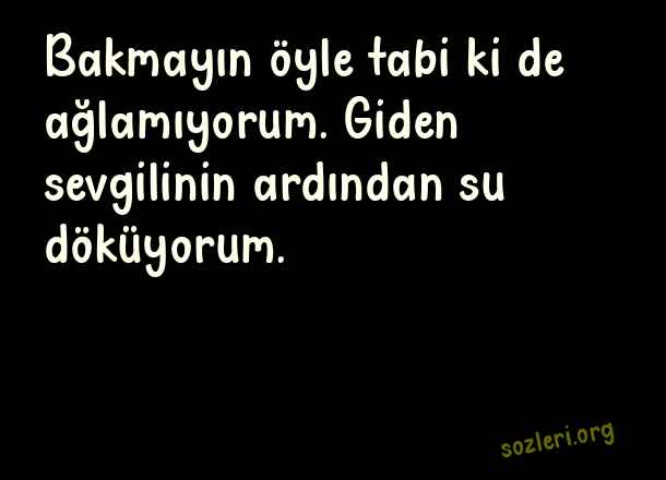 Bakmayın öyle tabi ki de ağlamıyorum. Giden sevgilinin ardından su döküyorum. ( Giden Sevgiliye Sözler )