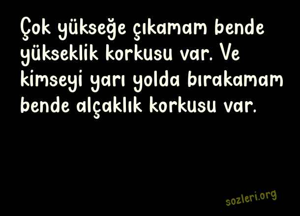Çok yükseğe çıkamam bende yükseklik korkusu var. Ve kimseyi yarı yolda bırakamam bende alçaklık korkusu var. ( Giden Sevgiliye Sözler )