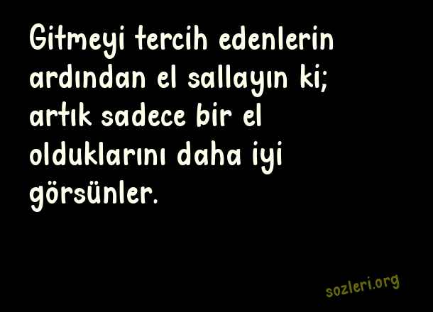 Gitmeyi tercih edenlerin ardından el sallayın ki; artık sadece bir el olduklarını daha iyi görsünler. ( Giden Sevgiliye Sözler )