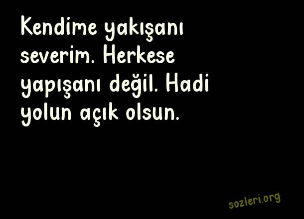 Kendime yakışanı severim. Herkese yapışanı değil. Hadi yolun açık olsun. ( Giden Sevgiliye Sözler )