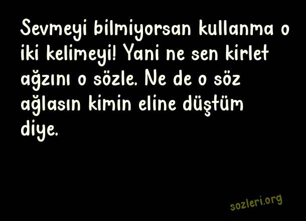 Sevmeyi bilmiyorsan kullanma o iki kelimeyi! Yani ne sen kirlet ağzını o sözle. Ne de o söz ağlasın kimin eline düştüm diye. ( Giden Sevgiliye Sözler )