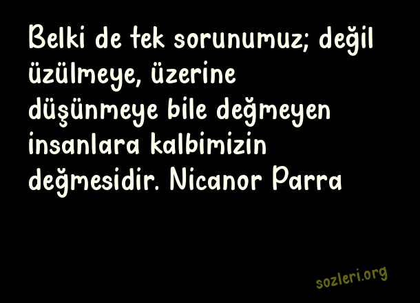 Belki de tek sorunumuz; değil üzülmeye, üzerine düşünmeye bile değmeyen insanlara kalbimizin değmesidir. Nicanor Parra ( Günlük Sözler )