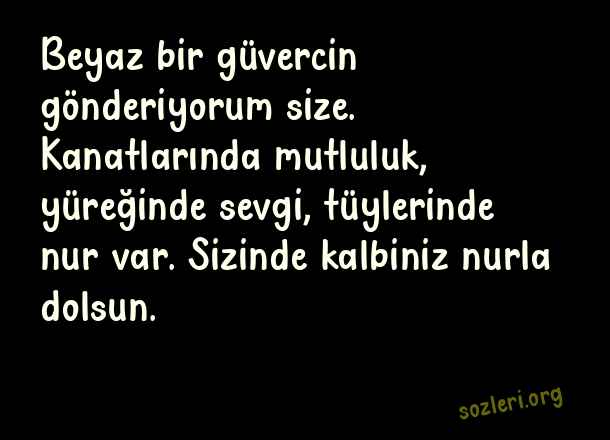 Beyaz bir güvercin gönderiyorum size. Kanatlarında mutluluk, yüreğinde sevgi, tüylerinde nur var. Sizinde kalbiniz nurla dolsun. ( Güvercin )