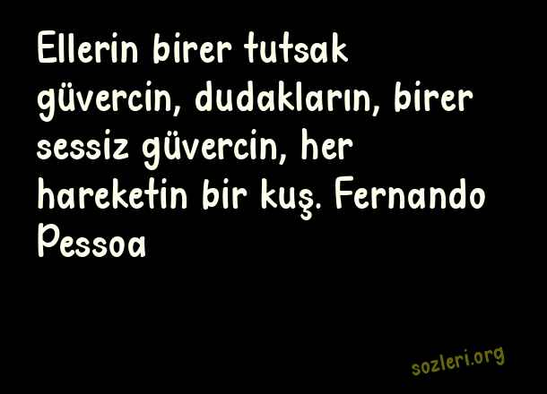 Ellerin birer tutsak güvercin, dudakların, birer sessiz güvercin, her hareketin bir kuş. Fernando Pessoa ( Güvercin )