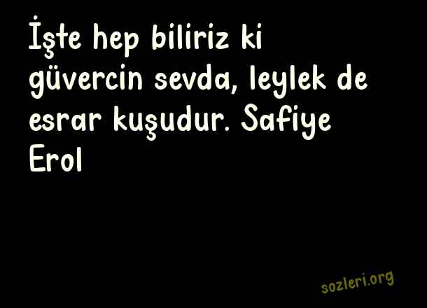 İşte hep biliriz ki güvercin sevda, leylek de esrar kuşudur. Safiye Erol ( Güvercin )