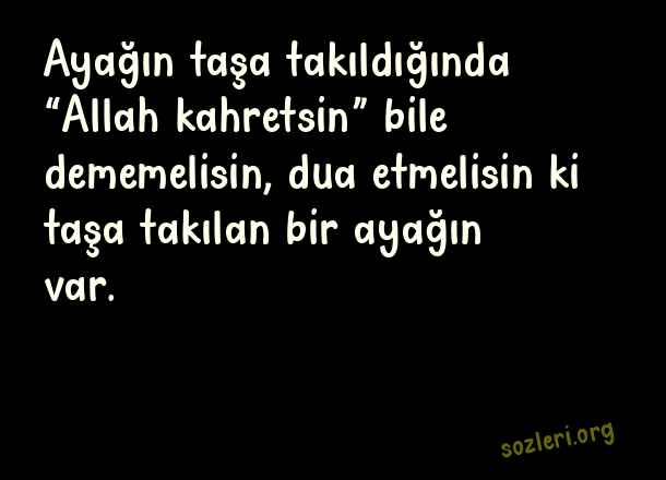 Ayağın taşa takıldığında “Allah kahretsin” bile dememelisin, dua etmelisin ki taşa takılan bir ayağın var. ( Güzel Dini Paylaşımlar )