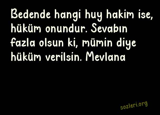 Bedende hangi huy hakim ise, hüküm onundur. Sevabın fazla olsun ki, mümin diye hüküm verilsin. Mevlana ( Hakim )