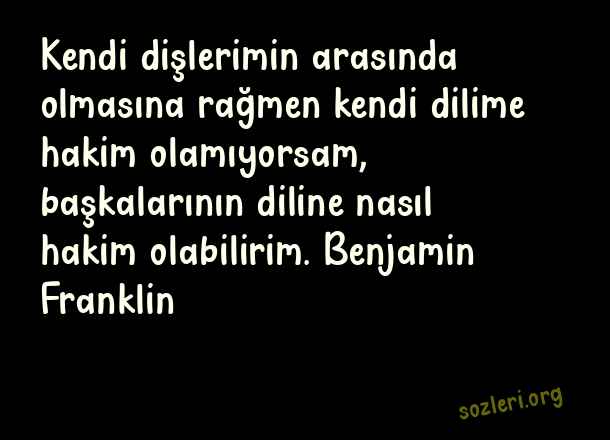Kendi dişlerimin arasında olmasına rağmen kendi dilime hakim olamıyorsam, başkalarının diline nasıl hakim olabilirim. Benjamin Franklin ( Hakim )