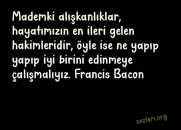Mademki alışkanlıklar, hayatımızın en ileri gelen hakimleridir, öyle ise ne yapıp yapıp iyi birini edinmeye çalışmalıyız. Francis Bacon ( Hakim )
