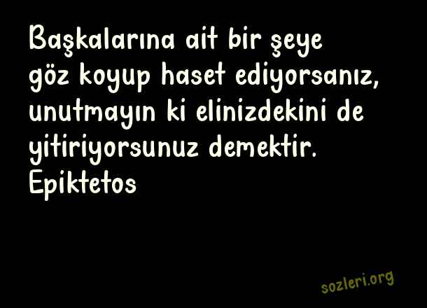 Başkalarına ait bir şeye göz koyup haset ediyorsanız, unutmayın ki elinizdekini de yitiriyorsunuz demektir. Epiktetos ( Haset )