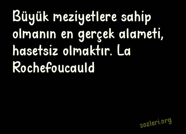 Büyük meziyetlere sahip olmanın en gerçek alameti, hasetsiz olmaktır. La Rochefoucauld ( Haset )