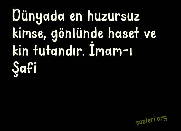 Dünyada en huzursuz kimse, gönlünde haset ve kin tutandır. İmam-ı Şafi ( Haset )