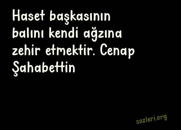 Haset, başkasının balını kendi ağzına zehir etmektir. Cenap Şahabettin