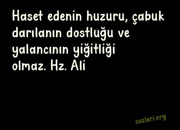 Haset edenin huzuru, çabuk darılanın dostluğu ve yalancının yiğitliği olmaz. Hz. Ali ( Haset )