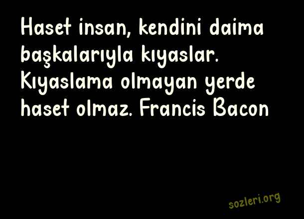 Haset insan, kendini daima başkalarıyla kıyaslar. Kıyaslama olmayan yerde haset olmaz. Francis Bacon ( Haset )