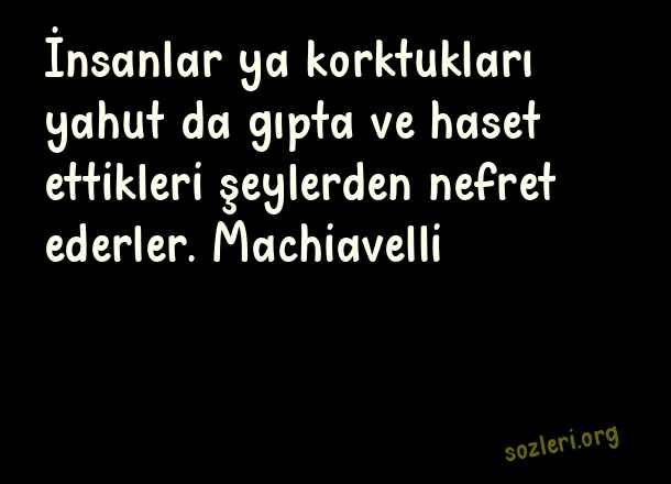 İnsanlar ya korktukları yahut da gıpta ve haset ettikleri şeylerden nefret ederler. Machiavelli ( Haset )