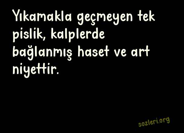 Yıkamakla geçmeyen tek pislik, kalplerde bağlanmış haset ve art niyettir. ( Haset )