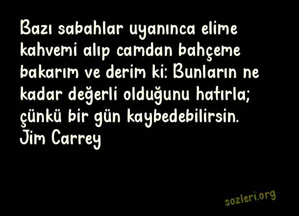 Bazı sabahlar uyanınca elime kahvemi alıp camdan bahçeme bakarım ve derim ki: Bunların ne kadar değerli olduğunu hatırla; çünkü bir gün kaybedebilirsin. Jim Carrey ( Hatırlamak )
