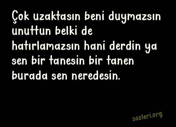 Çok uzaktasın beni duymazsın unuttun belki de hatırlamazsın hani derdin ya sen bir tanesin bir tanen burada sen neredesin. ( Hatırlamak )