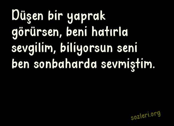 Düşen bir yaprak görürsen, beni hatırla sevgilim, biliyorsun seni ben sonbaharda sevmiştim. ( Hatırlamak )