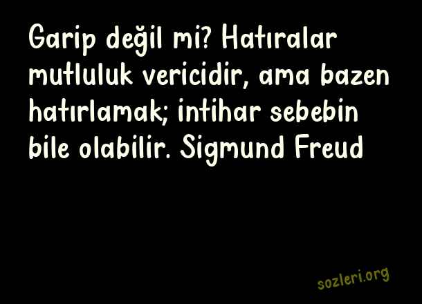 Garip değil mi? Hatıralar mutluluk vericidir, ama bazen hatırlamak; intihar sebebin bile olabilir. Sigmund Freud ( Hatırlamak )