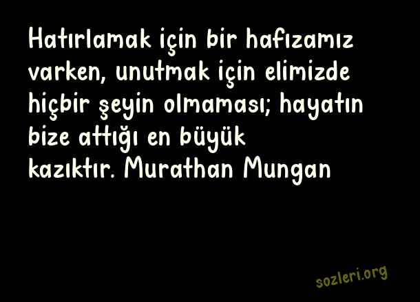 Hatırlamak için bir hafızamız varken, unutmak için elimizde hiçbir şeyin olmaması; hayatın bize attığı en büyük kazıktır. Murathan Mungan ( Hatırlamak )