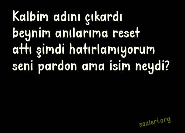 Kalbim adını çıkardı beynim anılarıma reset attı şimdi hatırlamıyorum seni pardon ama isim neydi? ( Hatırlamak )