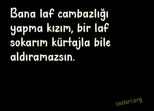 Bana laf cambazlığı yapma kızım, bir laf sokarım kürtajla bile aldıramazsın. ( Havalı Laf Sokucu Sözler )