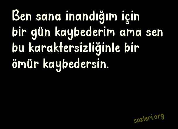 Ben sana inandığım için bir gün kaybederim ama sen bu karaktersizliğinle bir ömür kaybedersin. ( Havalı Laf Sokucu Sözler )