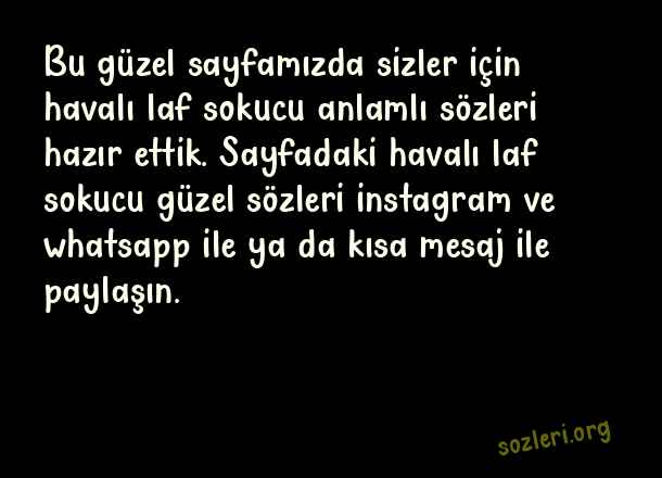 Bu güzel sayfamızda sizler için havalı laf sokucu anlamlı sözleri hazır ettik. Sayfadaki havalı laf sokucu güzel sözleri instagram ve whatsapp ile ya da kısa mesaj ile paylaşın. ( Havalı Laf Sokucu Sözler )