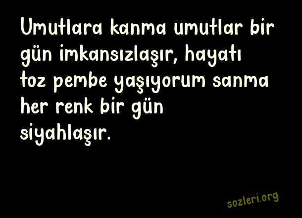 Umutlara kanma umutlar bir gün imkansızlaşır, hayatı toz pembe yaşıyorum sanma her renk bir gün siyahlaşır. ( Havalı Laf Sokucu Sözler )