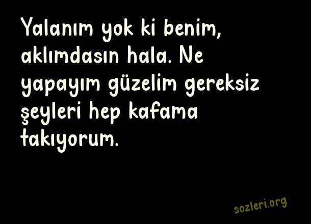 Yalanım yok ki benim, aklımdasın hala. Ne yapayım güzelim gereksiz şeyleri hep kafama takıyorum. ( Havalı Laf Sokucu Sözler )